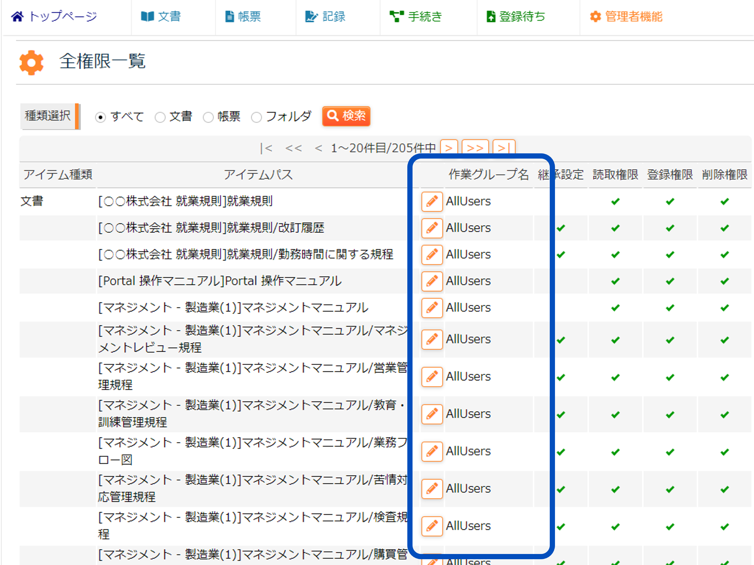 グループを作成し、効率的にまとめて権限設定