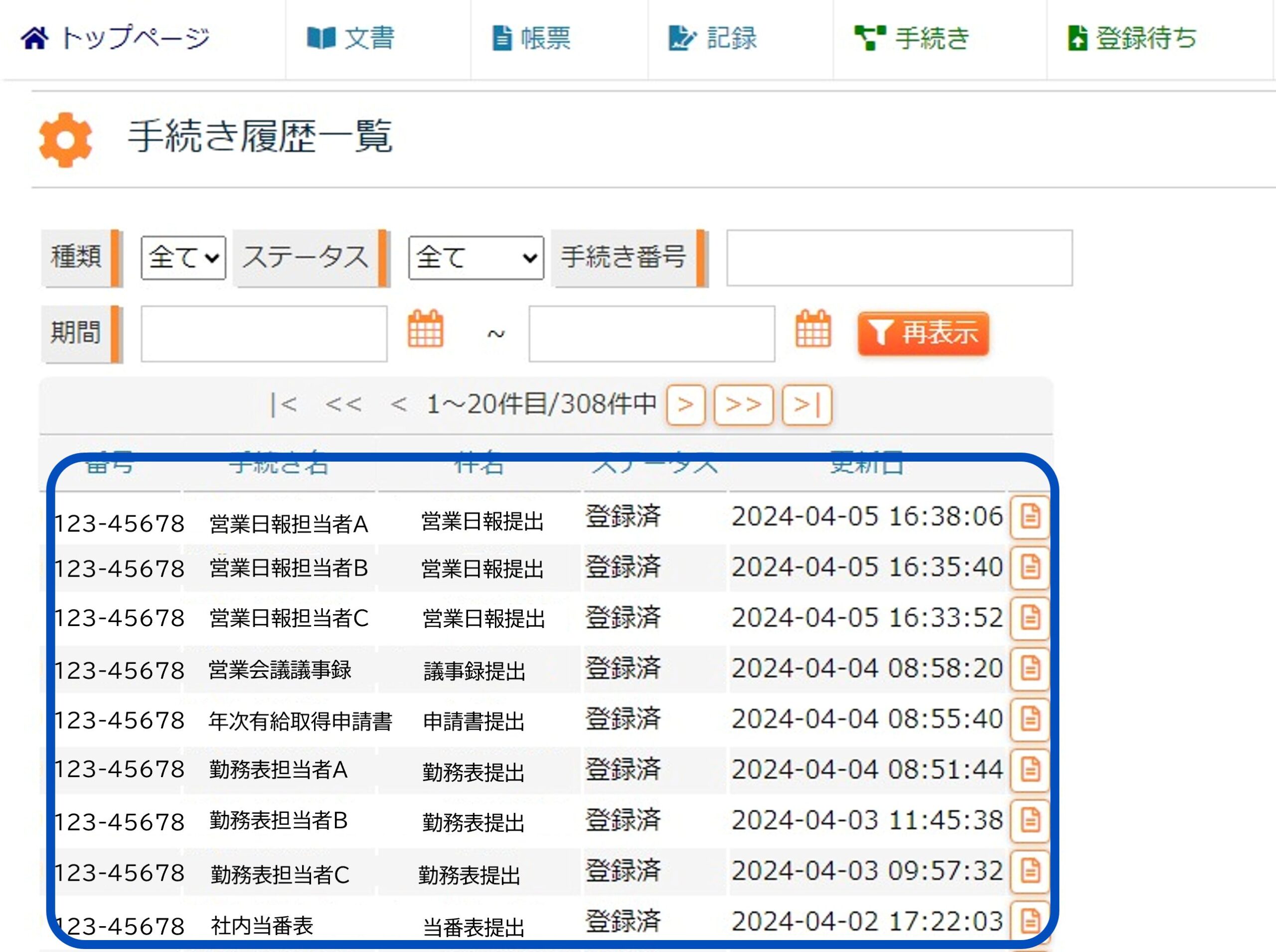 手続き履歴