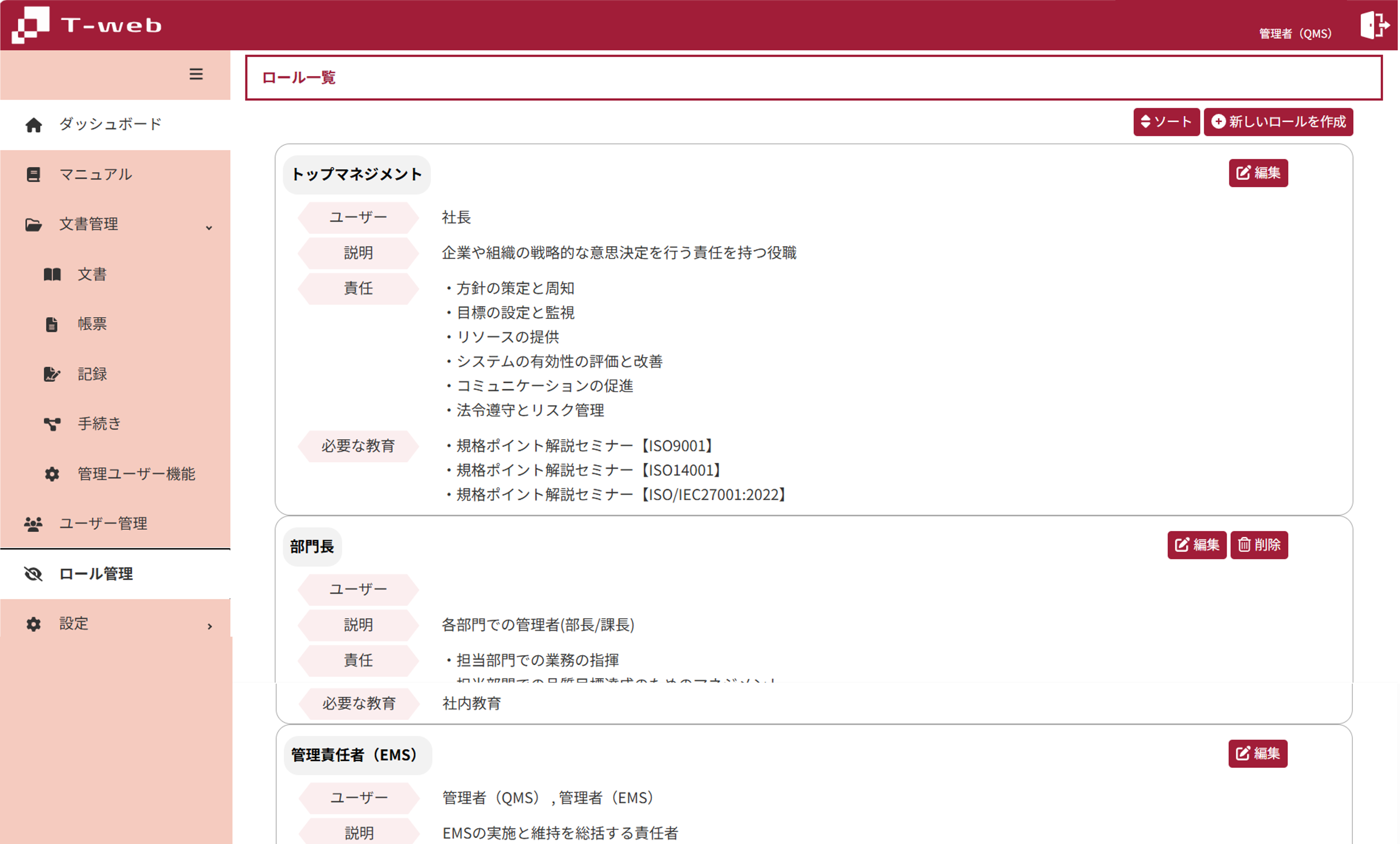 そのほか、作成した文書の版数管理や権限、ロール設定などもできるため、担当者の引き継ぎにも少ない負担で対応できます。
