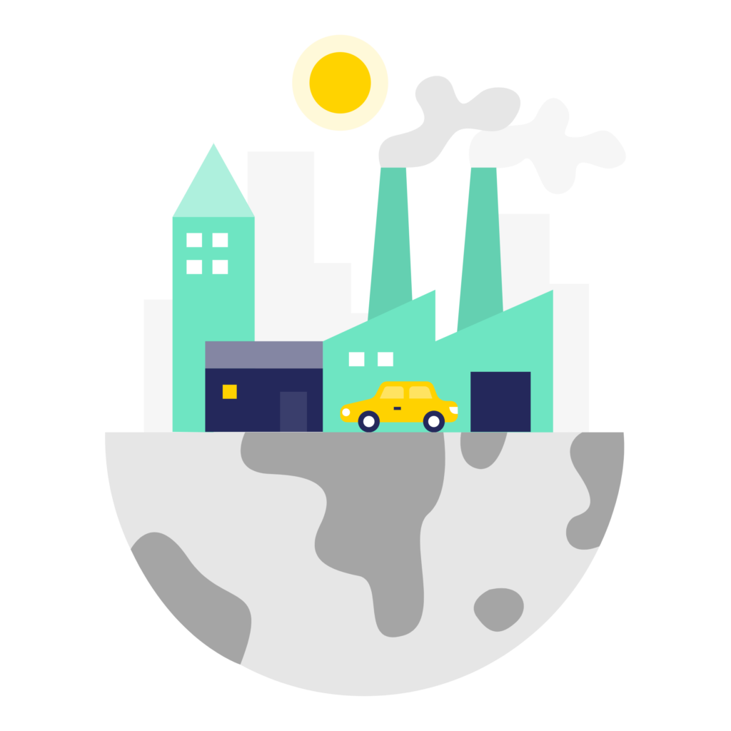 例えば車両の稼働によってCO2が排出され(環境側面)、地球温暖化が進む(環境影響)などです。